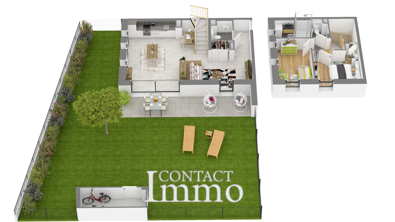 jardin paysagé avec remise de 6m²