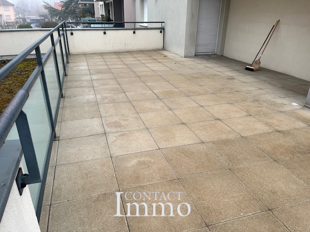 Ingersheim (68040)A Ingersheim, dans petite résidence très bien entretenue, bel appartement de 4 pièces comprenant, 1 dégagement avec placards, 1 vaste séjour avec accès à une immense terrasse en " L " éxposée Sud et Ouest, 1 cuisine indépendante et équipée avec accès terrasse, 3 chambres, 1 salle de bains, 1 wc séparé. Parking dans la résidence; Chauffage individuel gaz. Disponible de suite